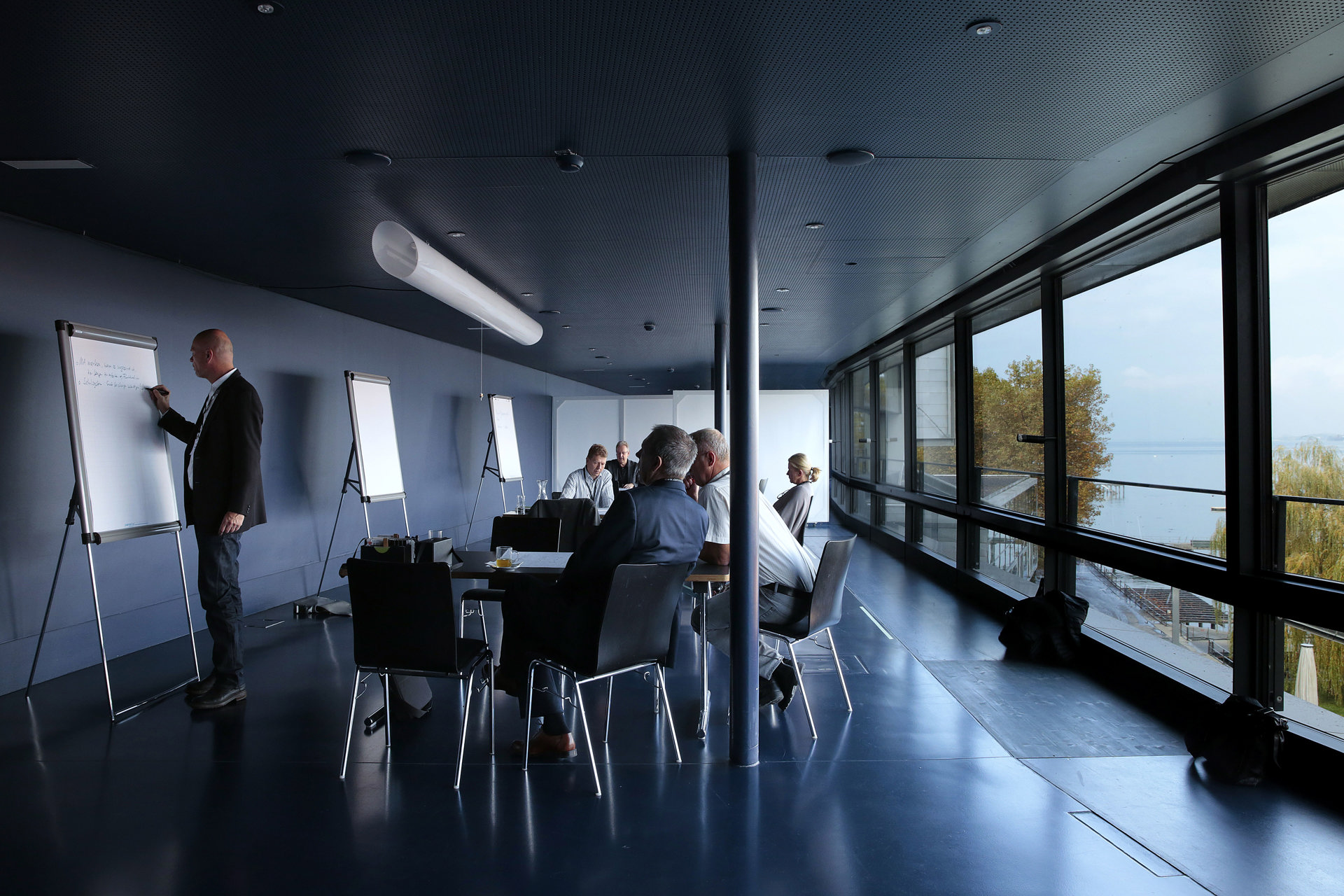 Vertrauen Sie bei der Planung Ihres Kongresses oder Ihrer Firmentagung auf ein ausgezeichnetes Veranstaltungszentrum, das sich noch dazu in einer bevorzugten Lage unmittelbar am Bodenseeufer befindet. Zu Ihrer Wahl stehen 23 Räume, die individuell bespielt werden können und technisch auf einem ausgezeichneten Stand ausgestattet sind. Viele davon öffnen sich in Richtung See und geben den Blick frei in eine imposante und inspirierende Umgebung. Angenehmes Arbeiten mit Tageslicht ist hier garantiert.