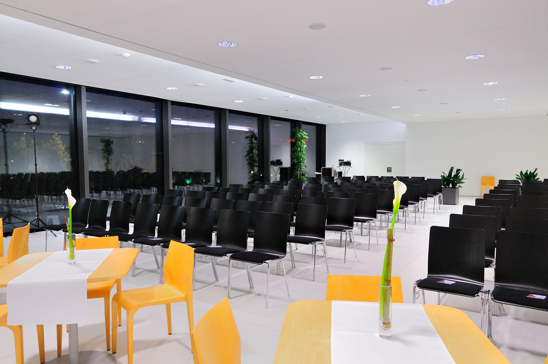 Mit Abmessungen von 21 mal 14 Metern und einer Raumhöhe von 2,8 Metern ermöglicht der Saal vielfältige Bestuhlungsoptionen für bis zu 315 Personen.