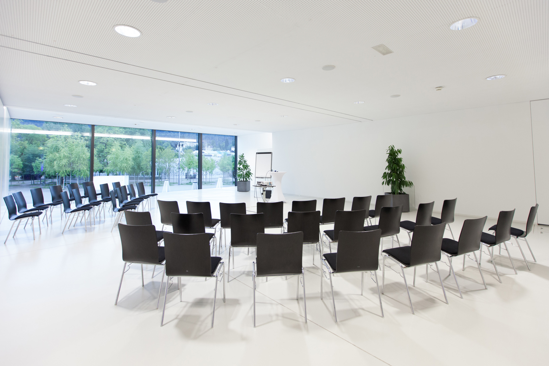 Der Saal Bodensee vereint Flexibilität und Weitblick in einem Raum, der durch seine schlichte, weiße Gestaltung jeder Veranstaltung die passende Bühne bietet. Besonders geeignet ist der Raum für Vorträge, Empfänge und Präsentationen. Für die Verwendung für Breakout-Sessions wird die Fläche durch zwei mobile Trennwände in bis zu 3 Räume unterteilt, ideale Bedingungen für Kongresse und Tagungen.