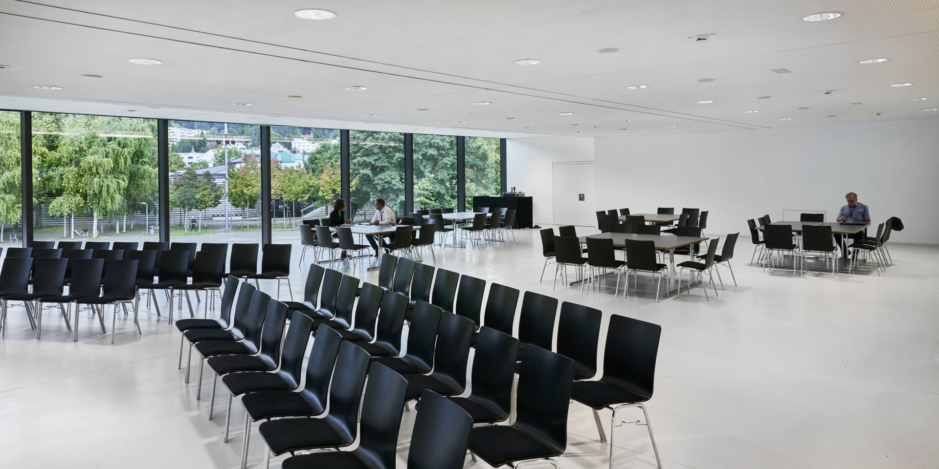 Für Veranstaltungen, die einen abgeschiedenen Rahmen suchen, bietet die Kombination aus dem Saal Bodensee und dem Saal Panorama eine ideale Lösung. Diese direkt aneinandergrenzenden Räume lassen sich miteinander verbinden und schaffen so einen privaten Bereich im Festspielhaus.