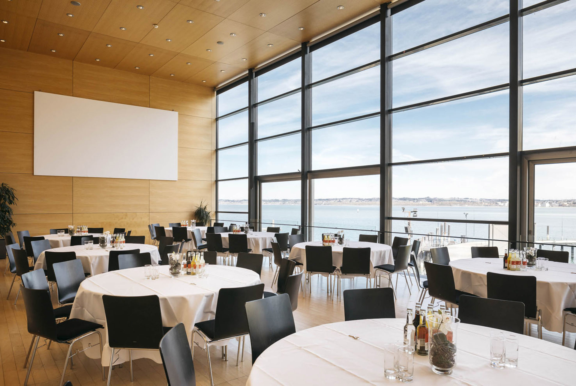 Durch seine flexiblen Gestaltungsmöglichkeiten und die exklusive Lage eignet sich das Seefoyer perfekt für Ihr nächstes großes Event, ob als Tagungsraum oder als Location für einen Galaabend mit Blick auf den atemberaubenden Sonnenuntergang!