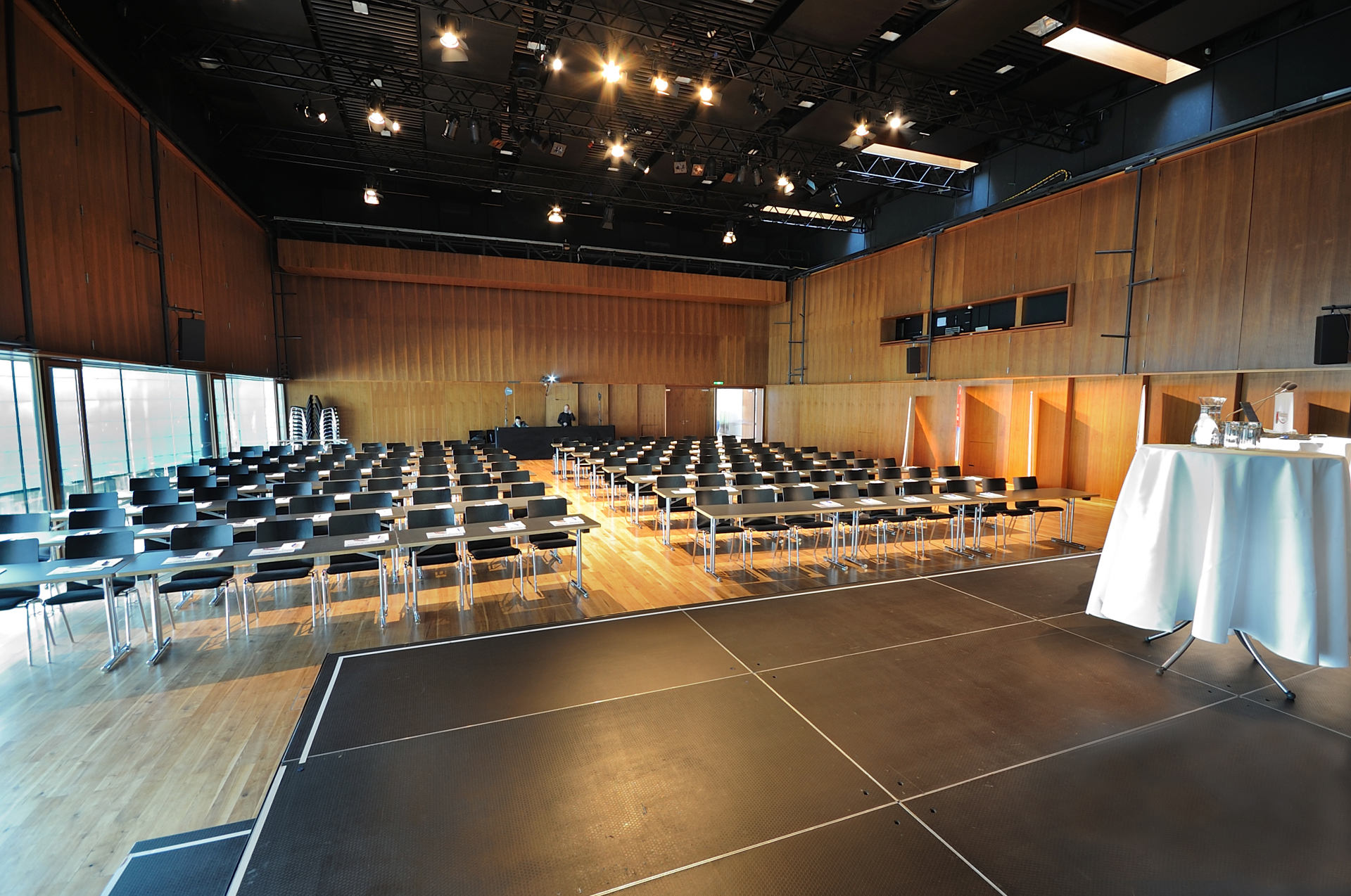 Aber auch als Bühne für szenische Darbietungen macht das Seestudio eine gute Figur: Mit einem verdeckten Zugang zur Bühne ist es geeignet für Schauspiel, Konzerte, Lesungen und vieles mehr. Seine Höhe von über sechs Metern lassen unterschiedlichste Bühnenaufbauten und Kulissen zu.