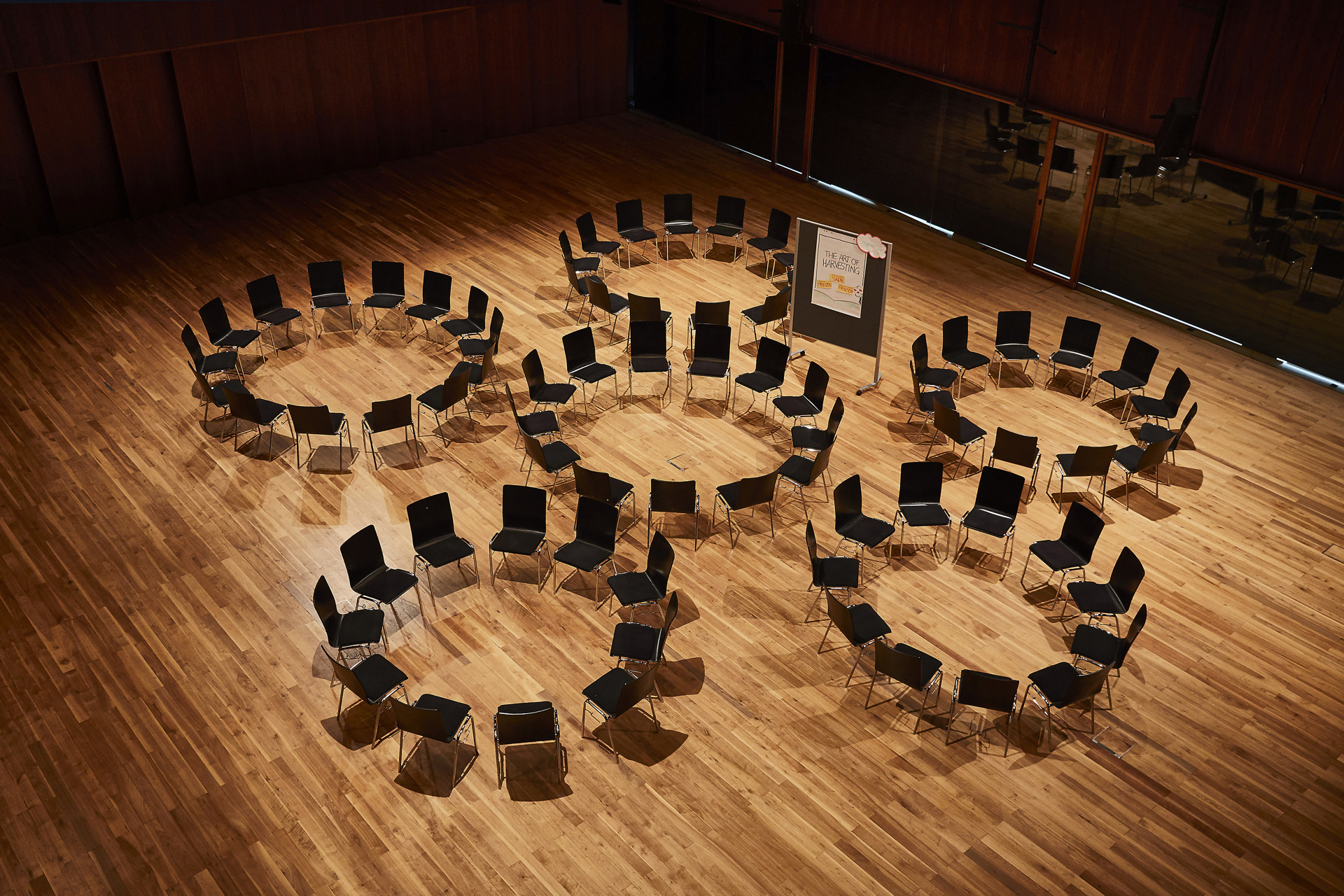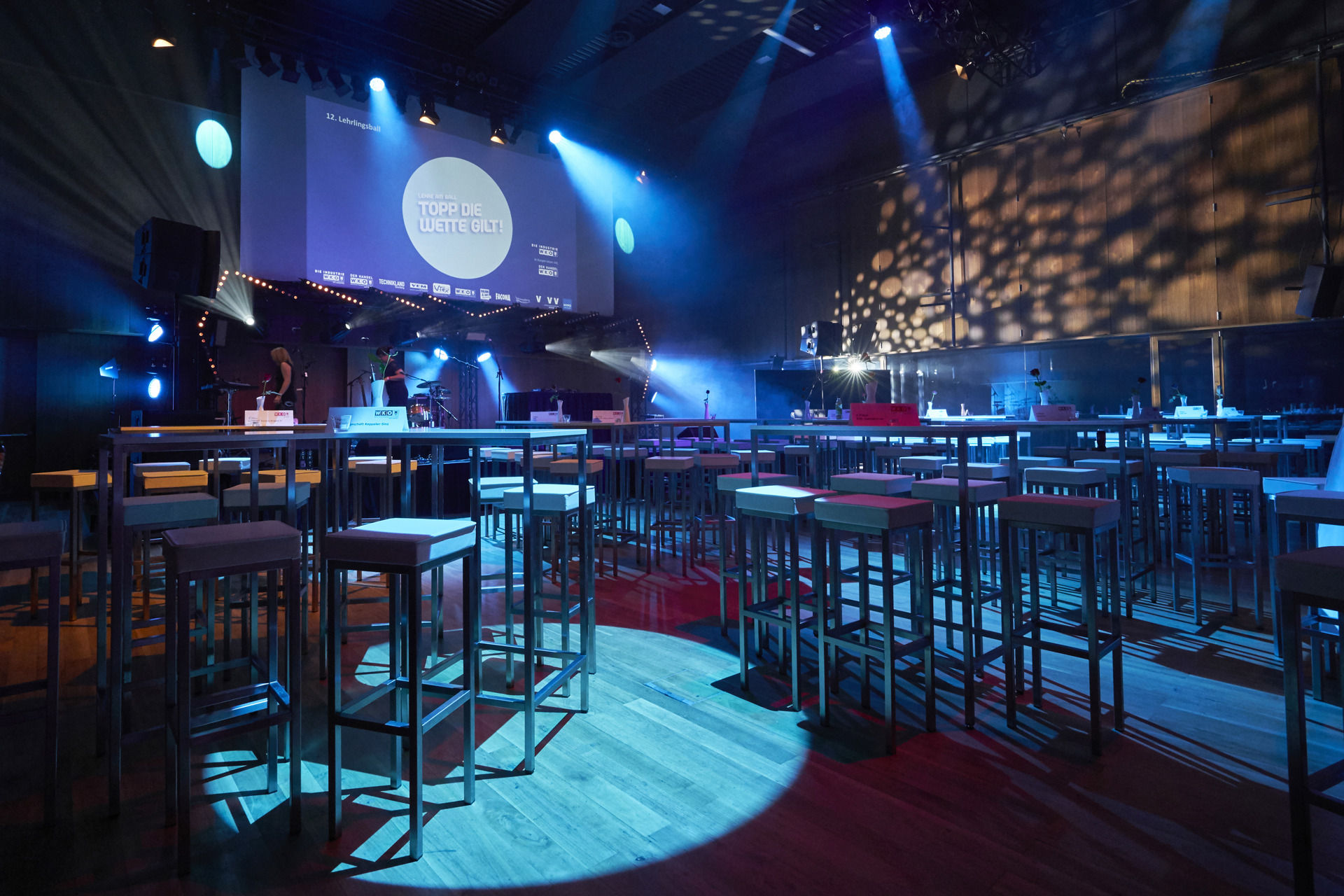 Für die richtige Atmosphäre sorgen die Projektleiter:innen in Zusammenarbeit mit unserem technischen Team. Die außergewöhnliche Ausstattung macht’s möglich: sie umfasst eine große, motorisierte Leinwand, flexible Lautsprecher- und Scheinwerferhalterungen sowie eine fahrbare technische Brücke, die höchste Flexibilität bei der Durchführung von Veranstaltungen ermöglicht.