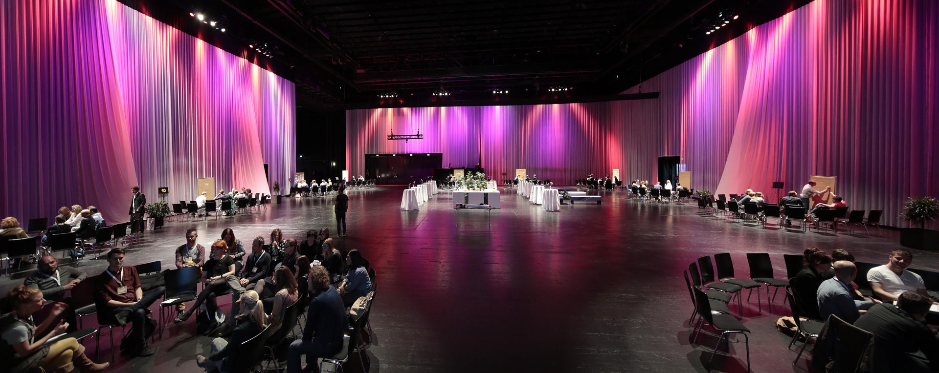 Für Kongresse und Tagungen lässt sich die Werkstattbühne mit der Hauptbühne sowie den Seitenbühnen 1 und 2 zusammenschließen – für Raumsituationen, die perfekt an Ihre Erfordernisse angepasst sind. So ergeben sich zahlreiche Veranstaltungsmöglichkeiten und eine Kapazität für bis zu 3.700 Besucher. Und durch den geschickten Einsatz von Licht lässt sich der Raum auch optisch verkleinern.