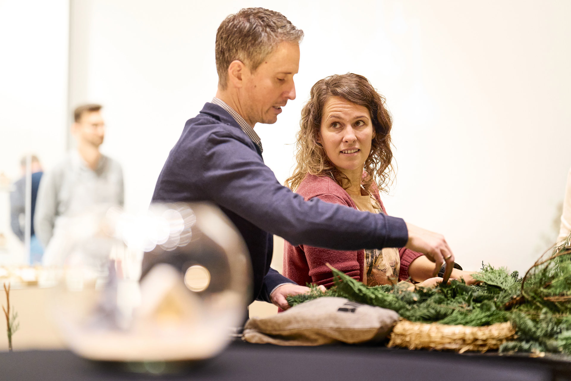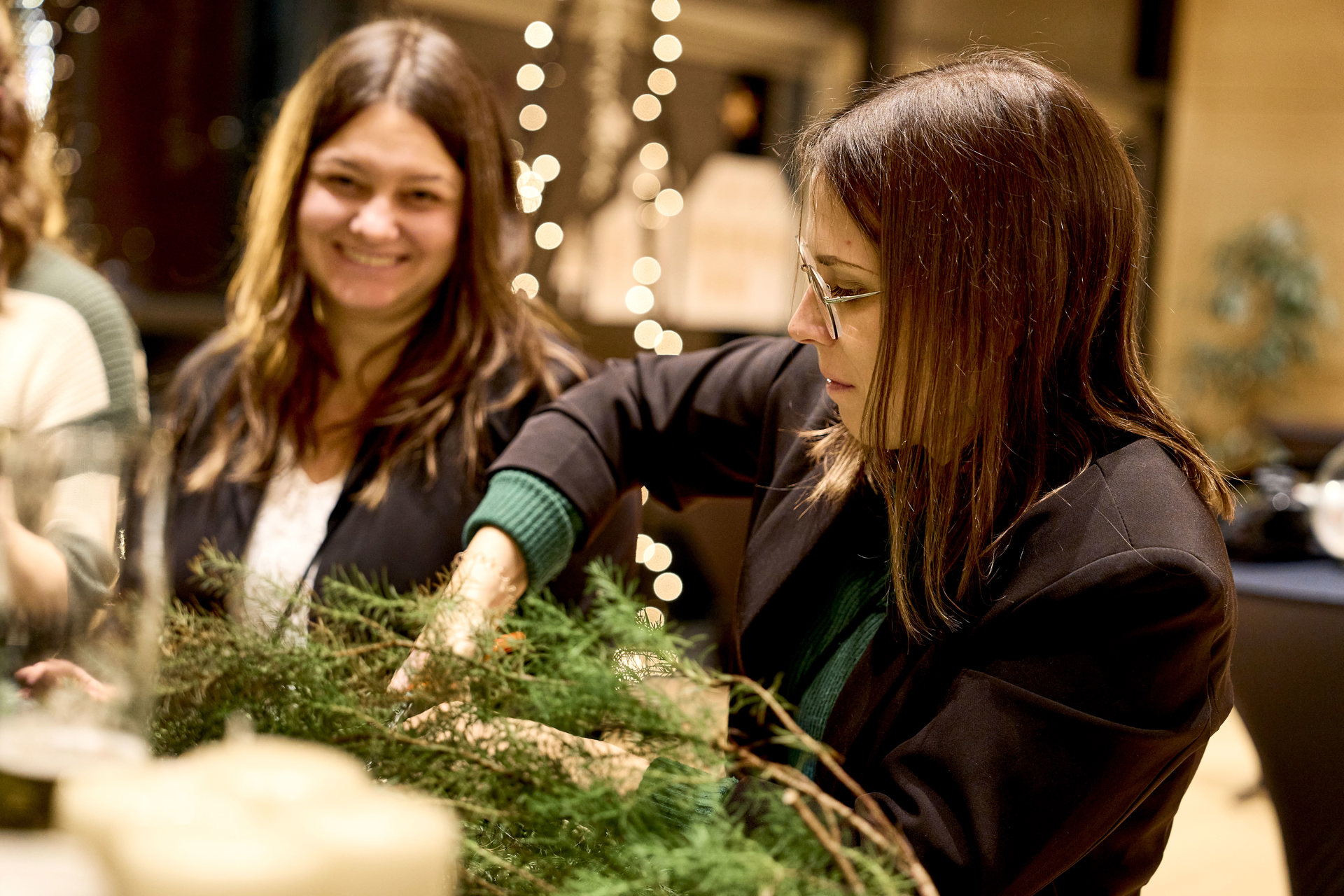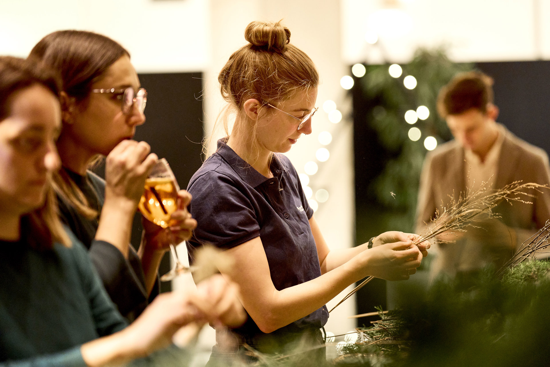 An der Handwerkstation entstanden, mit professioneller Unterstützung von Fabienne und Kerstin von Naturfloristik Natürlich Fabienne, wunderschöne Adventskränze – ganz individuell gestaltet, für Zuhause oder das Büro. Parallel dazu verwöhnte das Team von evenTZ bei foodaffairs die Gäste kulinarisch: Ein spritziger Aperitif eröffnete den Abend, gefolgt von herzhaften und süßen Köstlichkeiten.