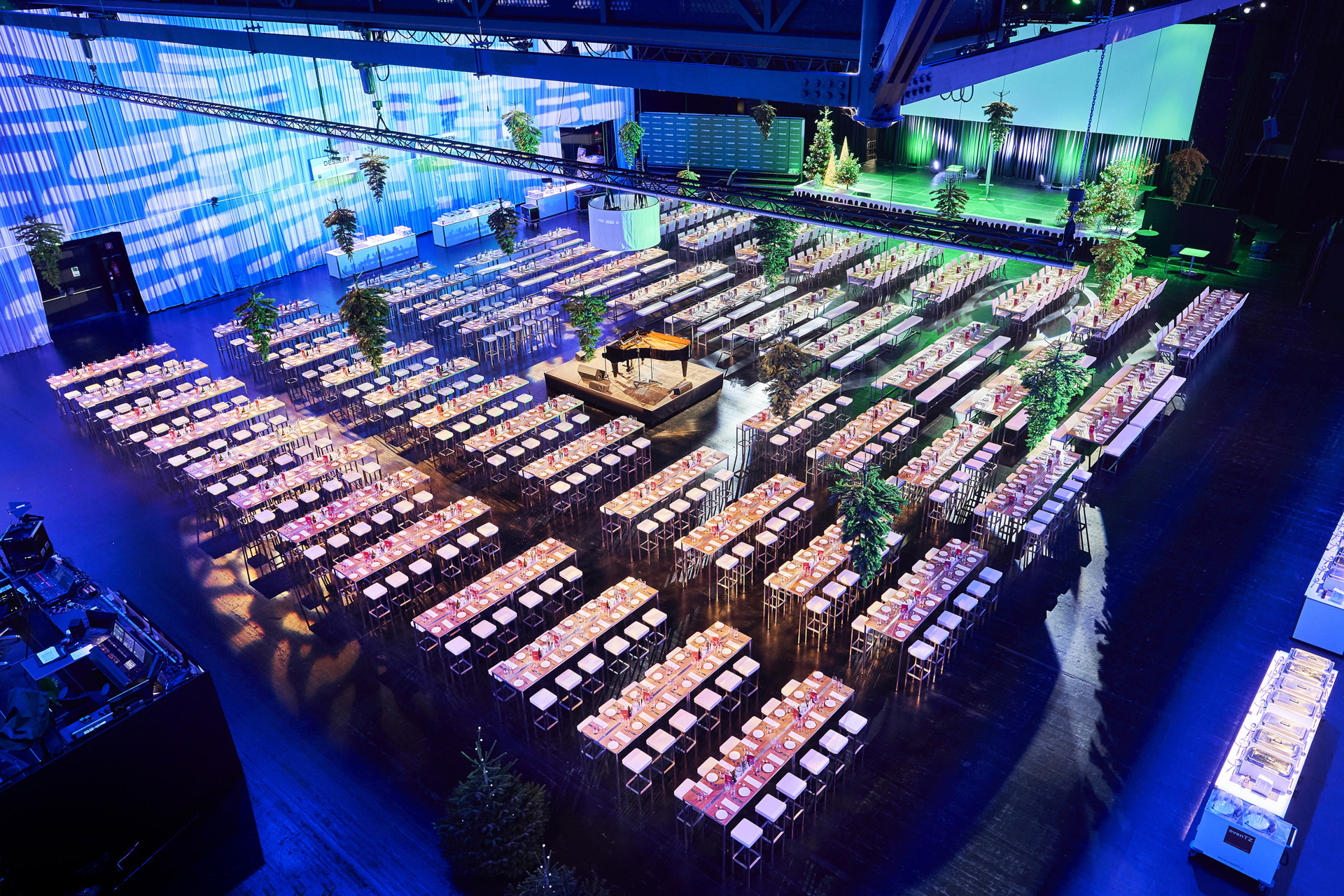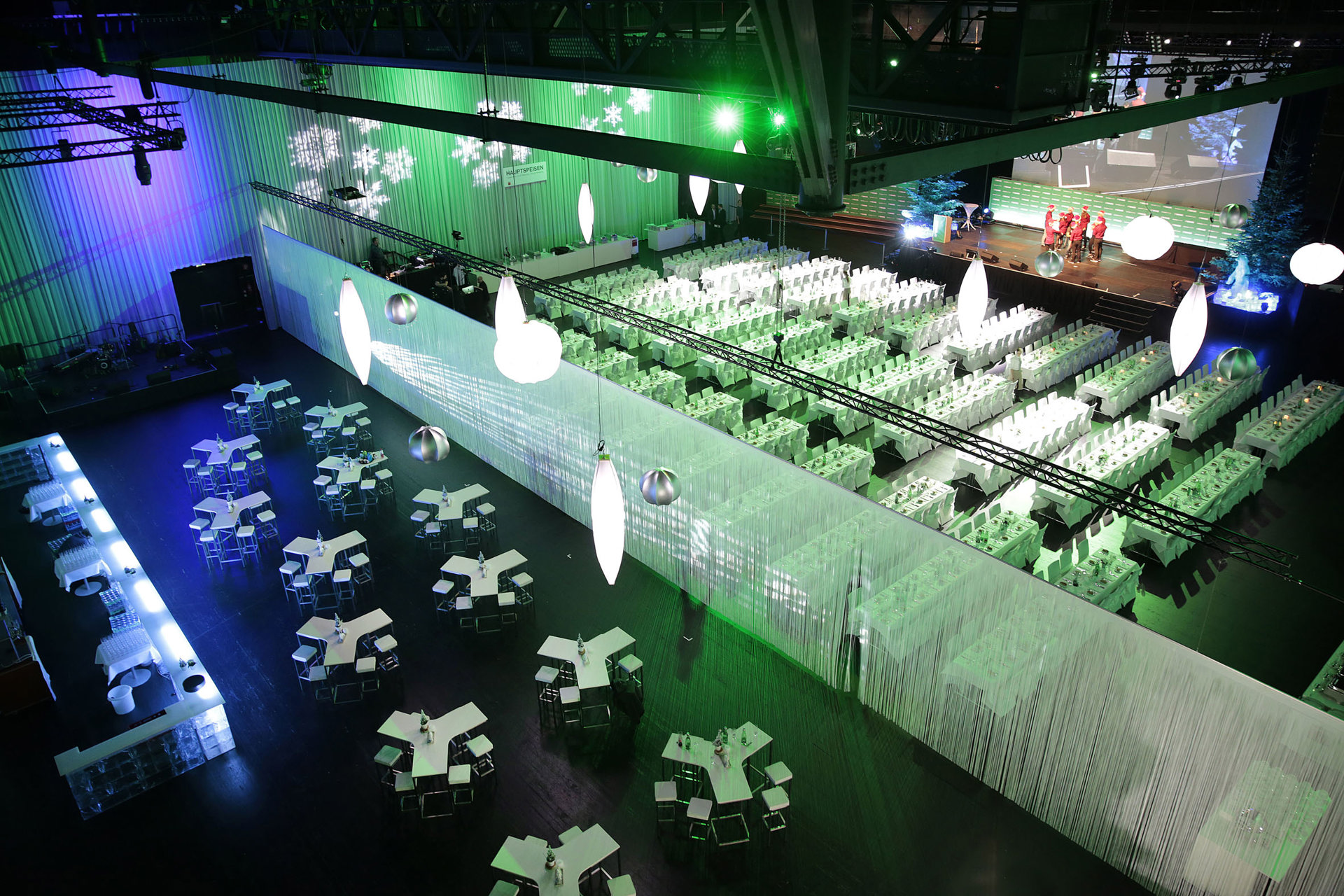 Sie ist die ideale Eventlocation. Wir realisieren hier Events mit 3000 Stehplätzen genauso wie exklusive Feiern für 200 Personen beispielsweise mit einem Raum-im-Raum-Konzept.