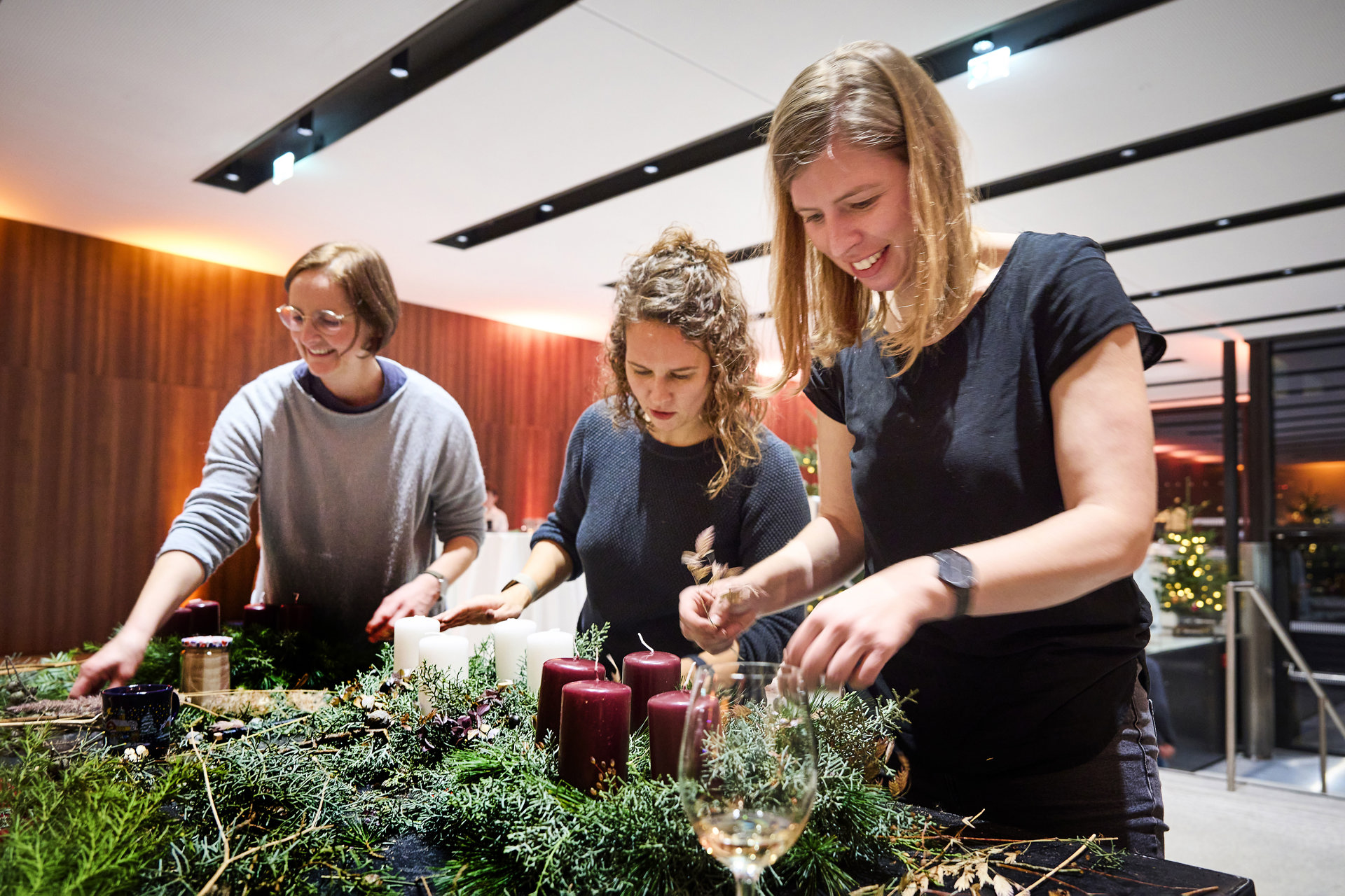 In entspannter und herzlicher Atmosphäre fertigten die Besucher:innen unter fachkundiger Anleitung durch Fabienne und Sarah ("natürlich Fabienne") wunderschöne Adventkränze für zuhause. Nach der kreativen Arbeit verwöhnte das Team von evenTZ die Gäste mit regionalen und saisonalen Köstlichkeiten.